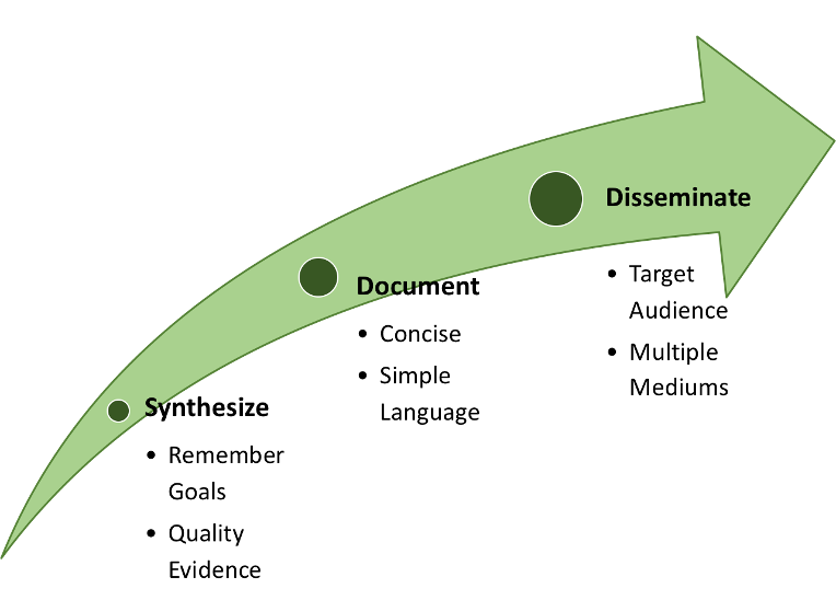 Step 5: Present EvidenceProviding evidence-based information and clearly stated recommendations is the most critical part of the writing process. Information should be presented in a concise way, and jargon should be avoided to ensure that the policy brief is easily understood by a diverse audience.Once a policy brief is ready, there are a number of ways to spread the message. Some of the suggestions include emailing or mailing the policy brief to policy actors, presenting the policy brief in relevant meetings or conferences, creating a video and uploading on social media, or even preparing the policy brief’s message as an information sheet or brochure2. This process of dissemination has been highlighted in Figure 8.