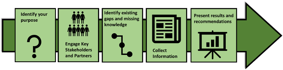 Step 1: Identify Purpose: In order to understand why and when a policy brief is needed, a few key steps should be considered as highlighted in Figure 4. The issue or the problem can be identified by asking simple questions, for example, “What do you think is the cause of problem X?” These questions can be brainstormed alone, with peers or discussed in a group. Coming up with questions can help develop a deeper understanding of the issue and ultimately lead to a focused and more efficient research process.